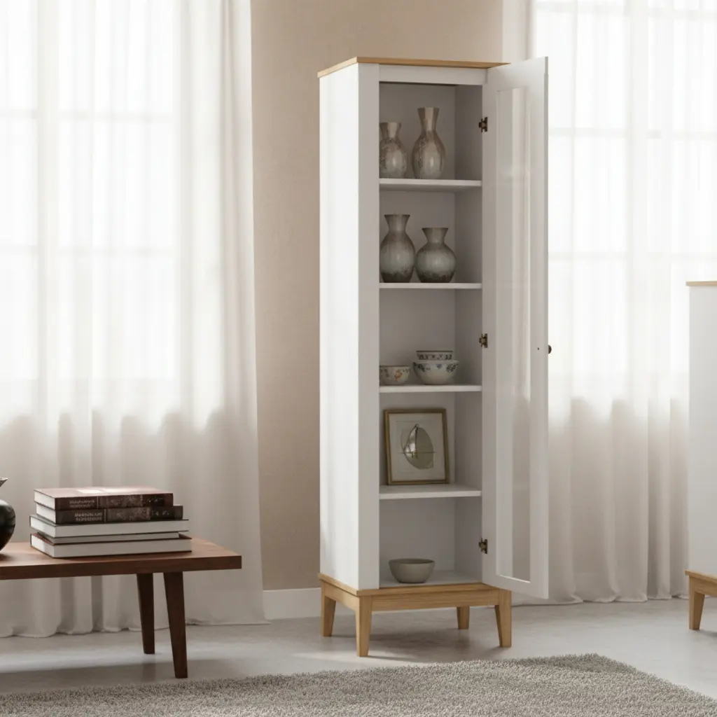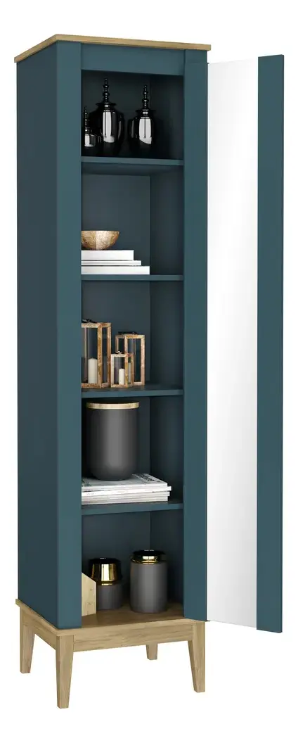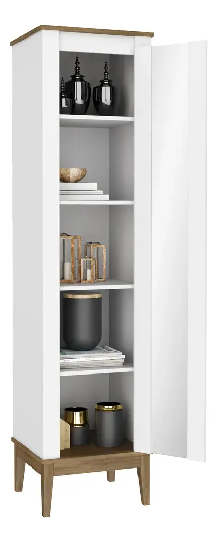 Fabricado en MDP, este mueble cuenta con una altura de 180 cm, un ancho de 45 cm y una profundidad de 40 cm, lo que lo convierte en una opción práctica para espacios reducidos. Su estructura robusta permite soportar hasta 50 kg en cada estante, garantizando la seguridad de sus objetos más preciados.