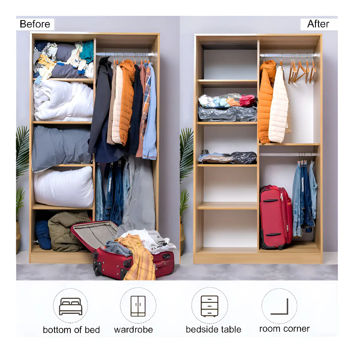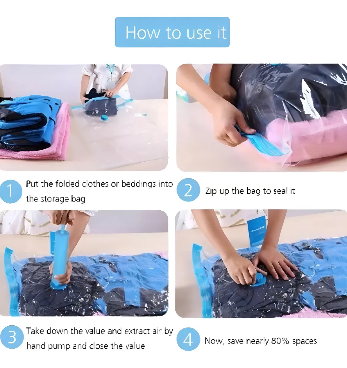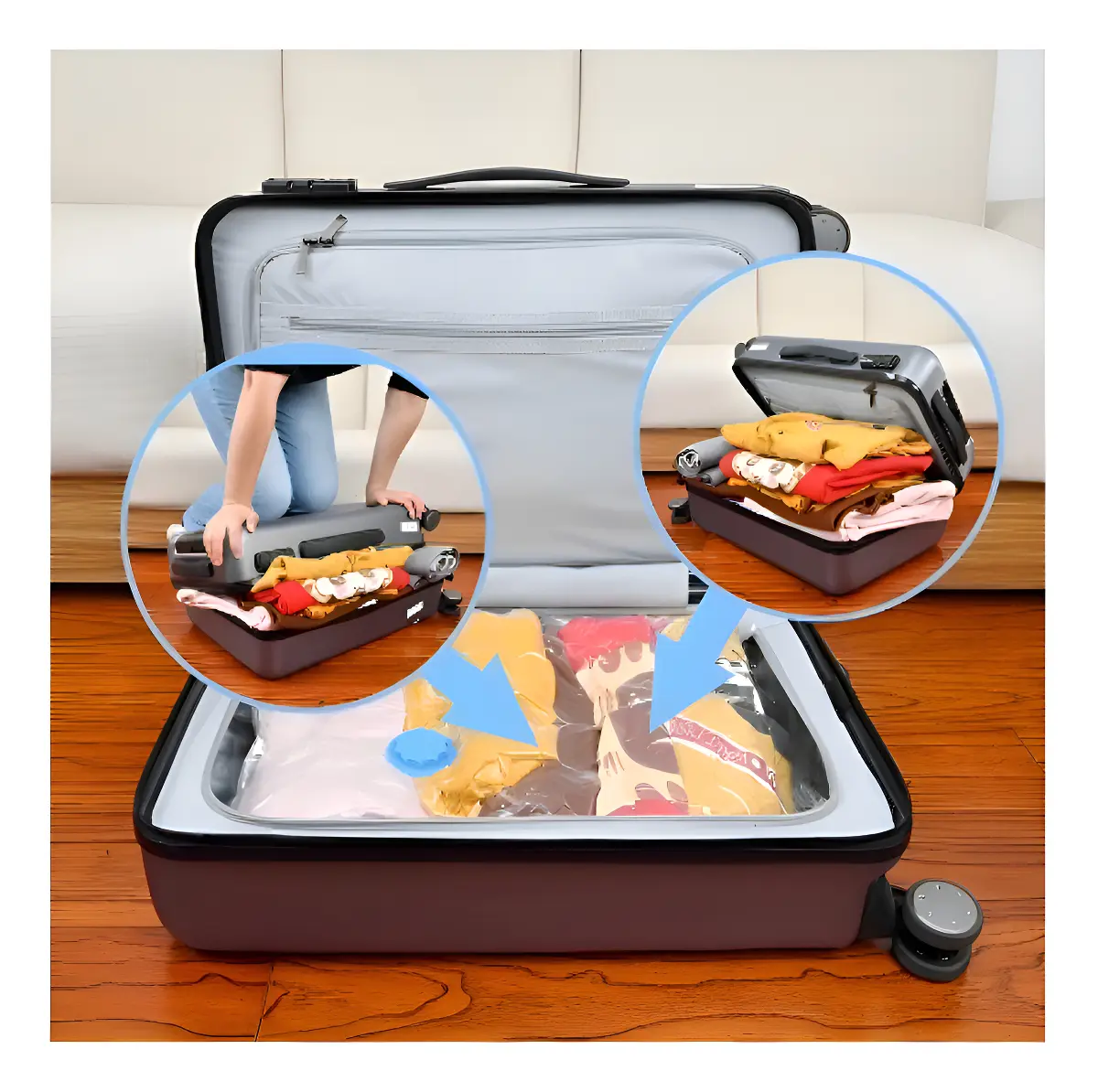 5 Bolsas Organizadoras Al Vacío Con Bomba Manual Viaje Ropa